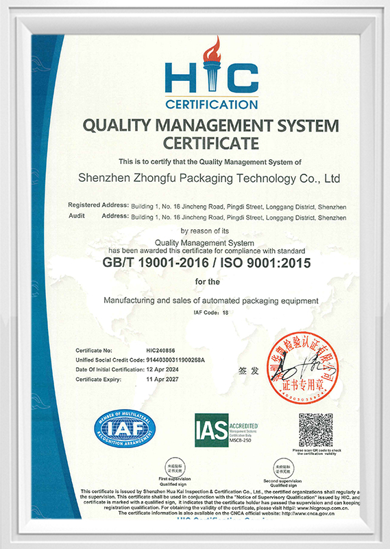 Shenzhen Zhongfu Packaging Technology Co., Ltd. has been engaged in the packaging equipment industry since 2002